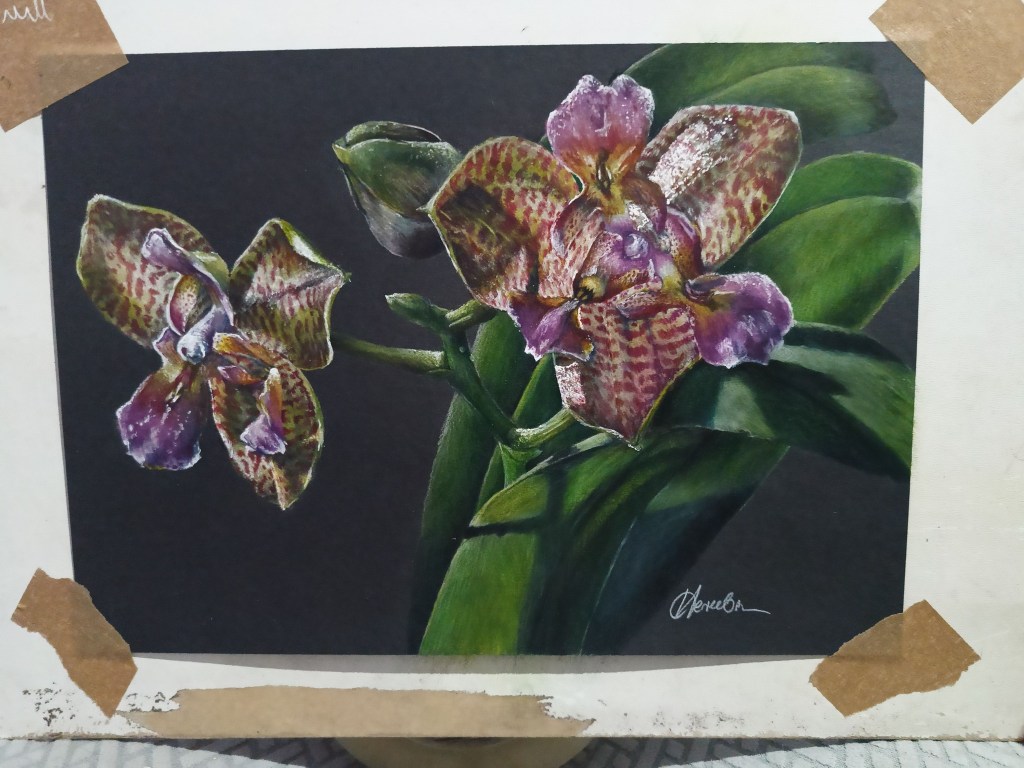 Epidendrum marmoratum– czarna kartka formatu a4 300g/m2