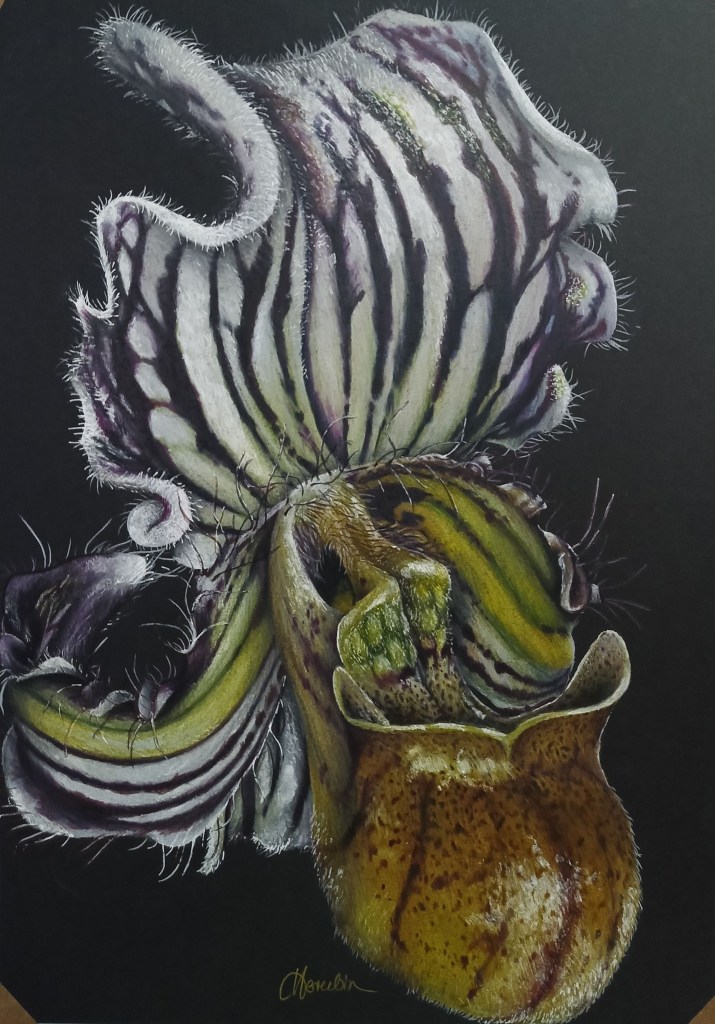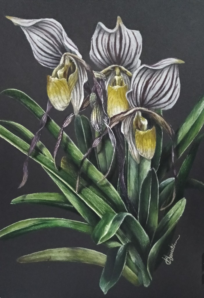 Paphiopedilum fairrieanum– czarna kartka formatu a3 320g/m2