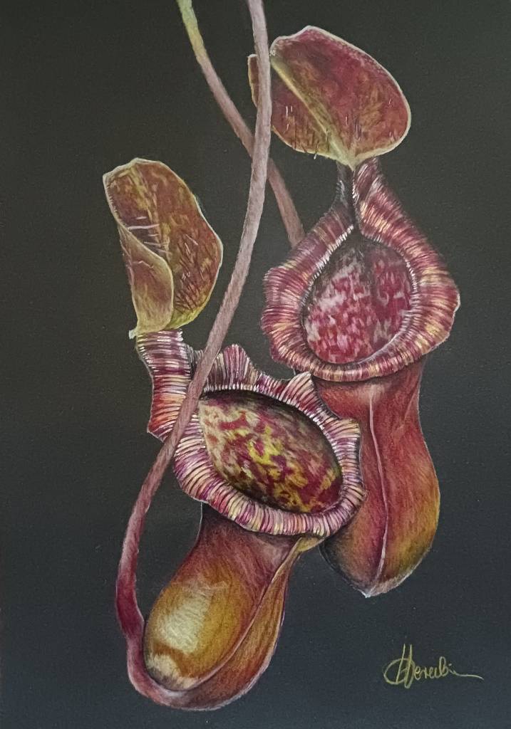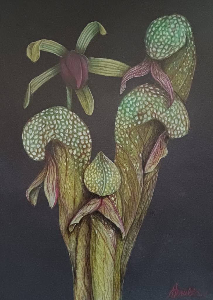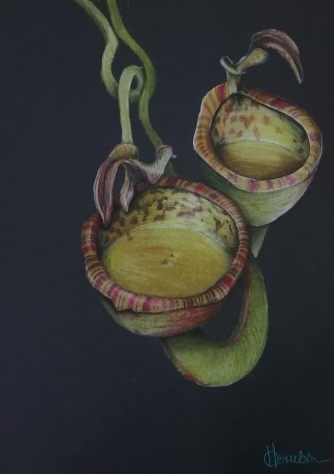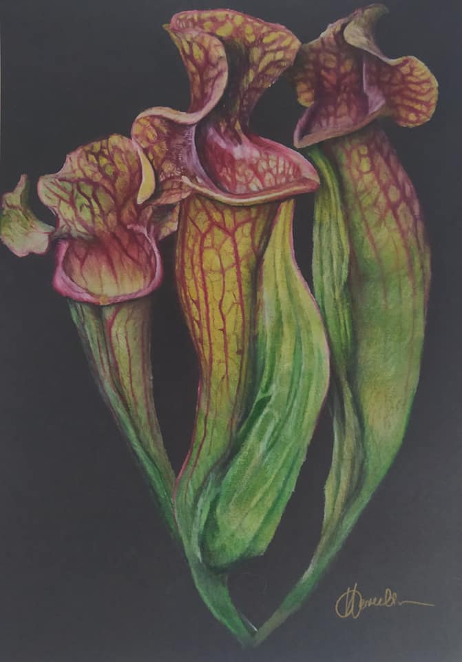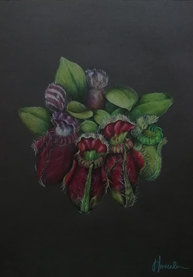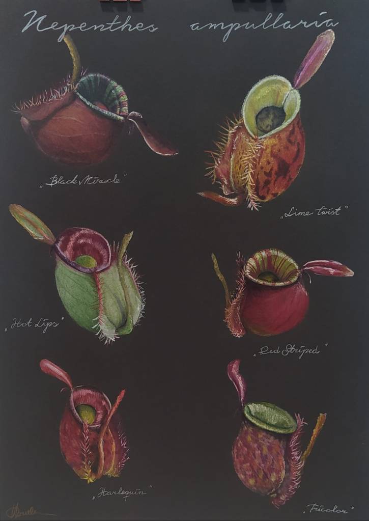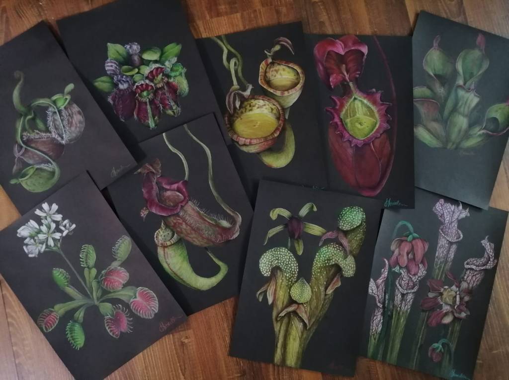„Mniam” to cykl rysunków botanicznych poświęcony roślinom owadożernym – fascynującym formom z pogranicza piękna i drapieżności. Prace przedstawiają m.in. dzbaneczniki, muchołówki i kapturnice, ukazane z bliska, z naciskiem na ich mięsiste kształty, kolory oraz detale odpowiedzialne za wabienie i chwytanie ofiary.